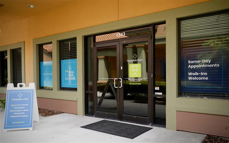 At Complete Care in Lake Mary, we provide comprehensive care for patients recovering from auto accidents and workplace injuries. Serving Lake Mary and the surrounding communities, we’re here to help people heal with same-day evaluations, walk-in appointments and compassionate care all under one roof. Whether a patient is dealing with pain, stiffness or complex injury recovery, our dedicated team is ready to assist.